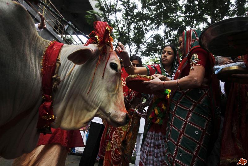 Mother Cow is the queen in the pantheon of sacred Indian animals. In fact, she stands head and shoulders above the rest. There are group all over Indian demanding the government name the cow as the national animal to replace the tiger which currently holds that honor. You might wonder how this all came about. Many years before the pyramids were built in ancient Egypt, or written law chiseled into stone by Hammurabi, or paper invited by the Chinese, the Indian people had given up their nomadic wanderings. They had settled down to an agricultural lifestyle. This was before coins were used as money, and wealth was determined by the number of cows owned by the farmer. Cattle became legal tender and were used as payments, presented as dowry, and even used to pay the hated taxes! Through the ages, cow’s milk has been often the only source of nourishment for India’s vast population.