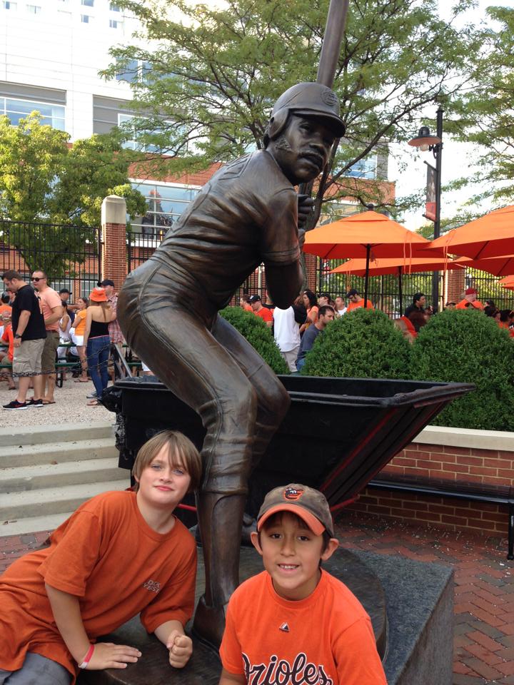 The grandfather and the two grandsons, arriving at Camden Yards.
