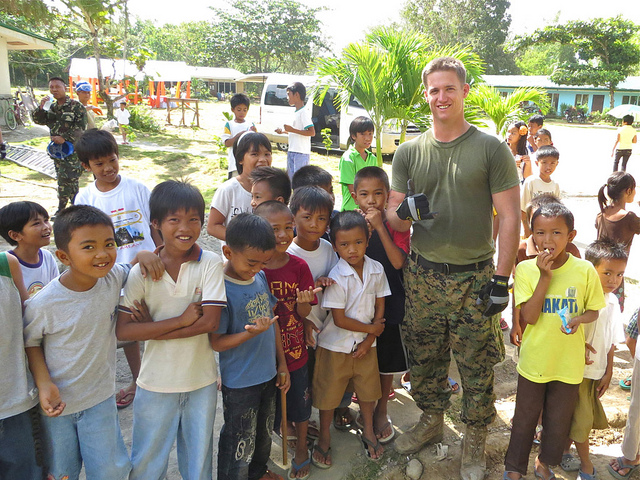 Our soldiers, sailors, and marines were sent to the Philippines to help with the disaster of the typhoon, Haiyan and were deployed  on Veterans Day, November 11th.  This is the day we as Americans thank and honor all our service men and women who have volunteered to protect us. Now  these “trained killers” are supporting  the Philippinos with gentleness and grace  in their tragic hour of need.