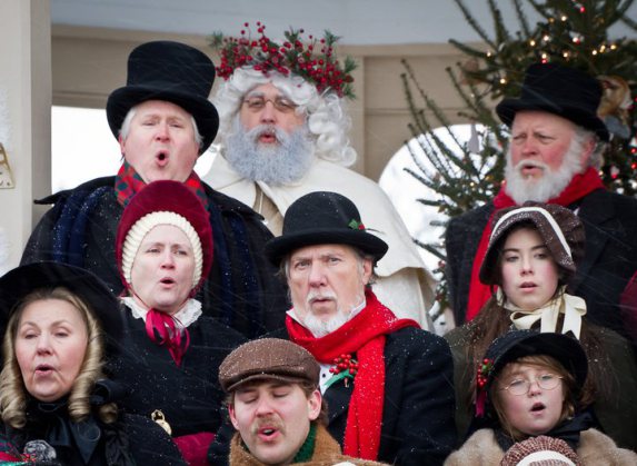 Our  experience started by witnessing the World’s Smallest Christmas Parade which lasted exactly 10 minutes. Blink and you would miss it, but standing in temperatures in the teens, made it a great idea to be short and sweet.   English Bobbies(policemen) shouted  the opening of the celebration  with  the modern police escorting the Victorian characters from A Christmas Carol .   Prominent  was John Tyler, the President of the day, Queen Victoria, Scrooge and Father Christmas bringing up the end with  shouts of “Happy Christmas!”  Interactions with the visitors  are encouraged by these characters as they stroll up and down the streets.  There are revels at the town gazebo on the edge of the lake, scenes performed by the Dickens characters, an award of a silver teasel for the most spirited performance, horse drawn wagons ,carriage rides, and even roasted chestnuts with  hot cocoa.