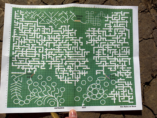 This is a map of the world’s largest corn maze. The shortest time it has taken to maneuver from entrance to exit is just over an hour, and the longest is hours and hours!