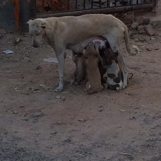 Today, we were at the Gandhi Ashram  and when we neared home, we were met with this picture.  Mama and according to Cassie, all nine puppies are accounted for, safe , and well cared for.