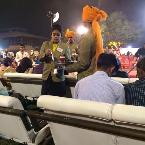 We were so hungry when it was time to eat. I didn’t take any pictures of the tables and tables along the perimeter of three sides of the elegant wedding “plot.” It was an unbelievable spread. There was traditional Indian cuisine, a table for Indian Jains who eat no root vegetables, there was Spanish food, Italian food, a sweets station as well as one for desserts. The service was impeccable, the food plentiful, and I might add, delicious. Not institutional food cooked in large quantities but delicious and fresh at each table ! We ate as if it was our last meal and were soon resting back in our comfortable chairs trying to stay warm. It was a chilly night . . . . unseasonable for this time in India.