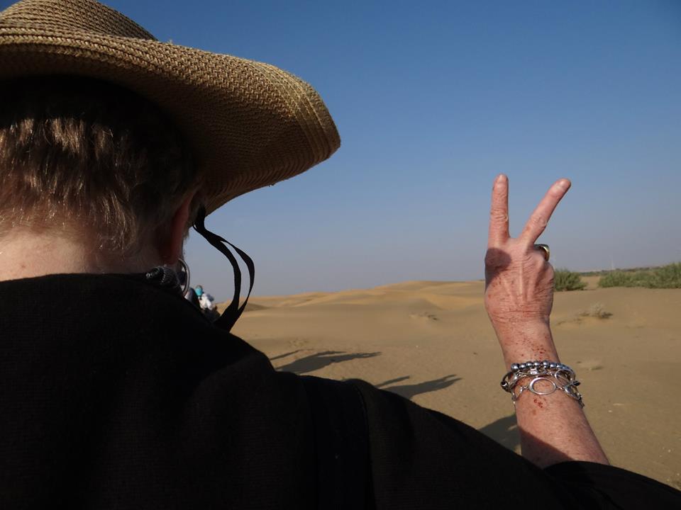 Jennifer, Mr. Rocket,our camel, and I were just bumping through the desert. . Jen was riding behind me and got this silly picture. . . what a fun ride it was . . PEACE !