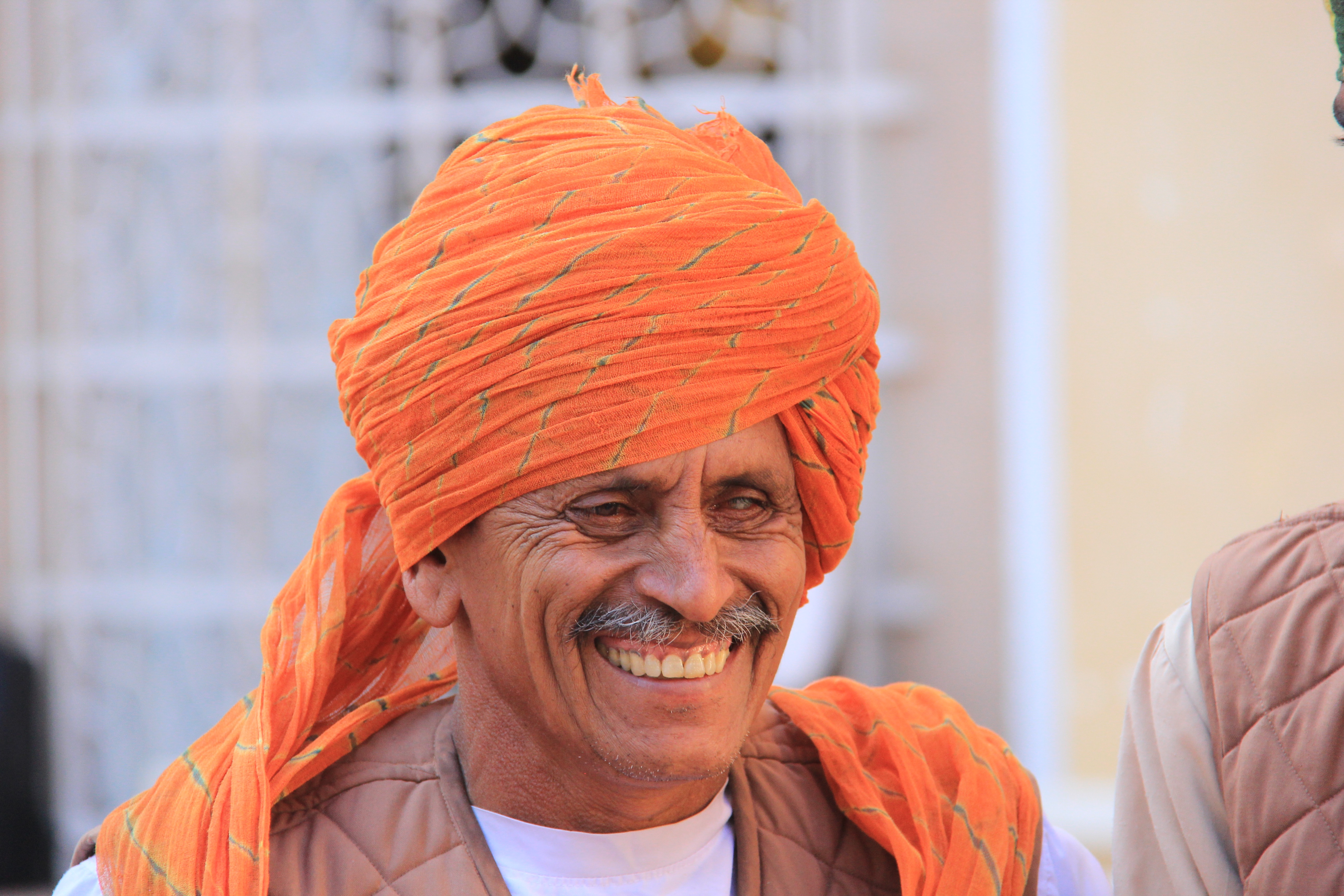 There are red, white, orange  and multi-colored turbans worn in Rajasthan. Orange is my favorite.   We  saw a demonstration  of a man rolling his turban with a 27 foot piece of cloth!