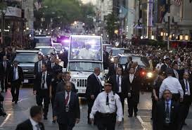 I can’t imagine anyone in the United States has missed the news about Pope Francis visiting Washington, New York, and Philadelphia this week. I am interested on several levels, and one is the extraordinary steps to protect him. You can see the pope mobile which is open on the back and sides with no bullet proof glass. ( Previous popes have had a complete bubble of bulletproof glass.) Francis has said “At 78, I don’t have much to lose. ” But for the huge security detail, this creates an even greater nightmare.