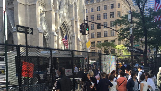 I saw one of the security gurus yesterday on TV explaining that the security is in concentric rings. People surrounding the pope as he walks or stops. Each of these professionals are watching, watching for anyone who seems suspicious. The next ring is police lining the route, with undercover security dispersed into the crowd. Lastly, there are snipers posted on buildings along the way. In New York, security was the tightest ever seen there. Streets closed with trucks blocking the intersections, an 8 foot wall along 5th Avenue and holding areas for people hoping to catch a glimpse. Of course the air space is closed during his visit. All the high end shops were closed on The Avenue.