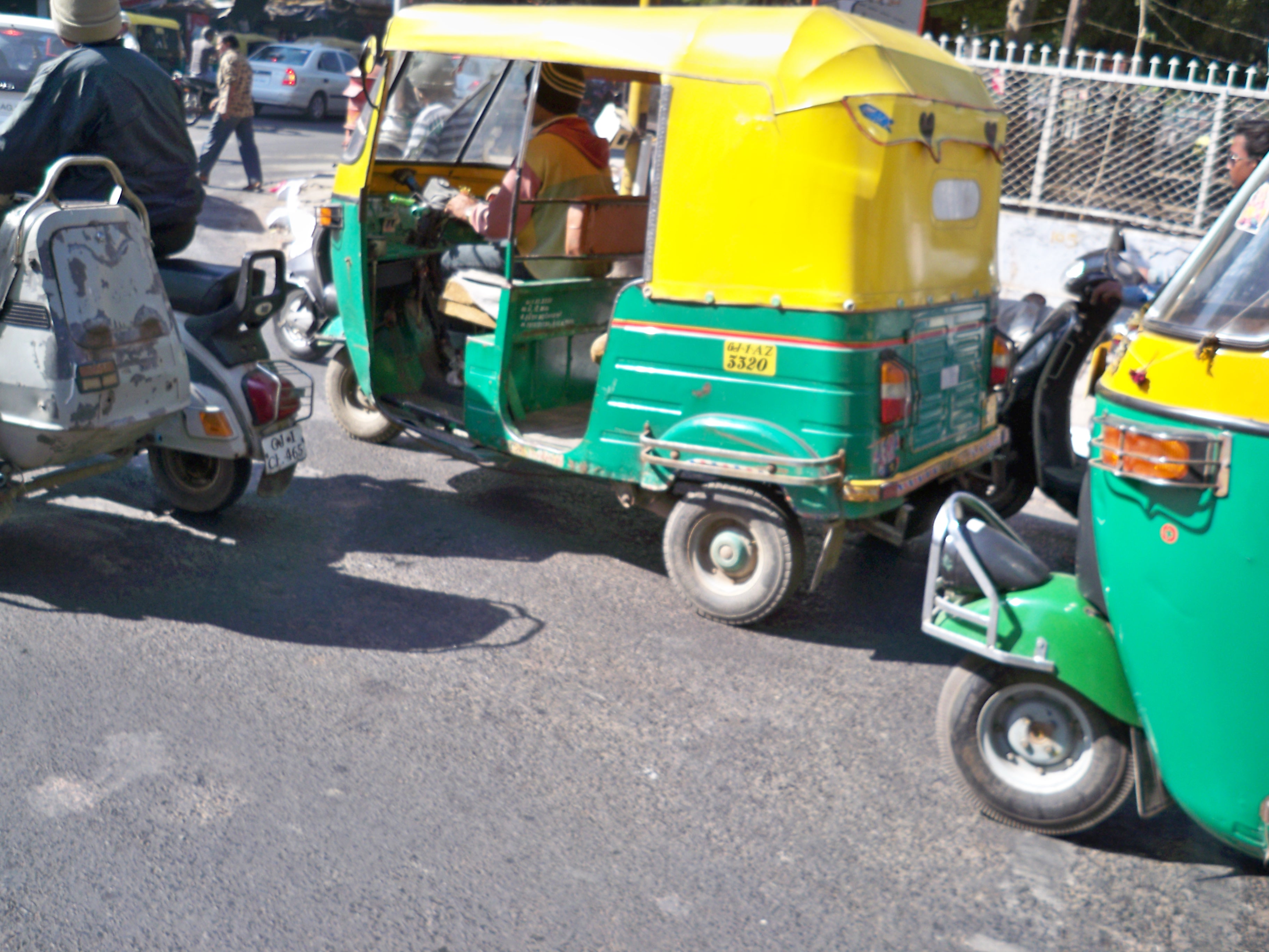 From day one in India , we have had a love/hate relationship with the rickshaw/tuk-tuk. It is cheap transportation…$0.20 for one way to Cept University. The most expensive rides have been $2.00 and we are still alive after 45 days. Cheap, safe? What is the hate side of the story? Well it scary, that’s what. Rickshaws going in all directions. Yes, the wrong way. Cars are on the left side (thank you British) and rickshaws squirm in and out and sometimes on the wrong side of the wrong side traffic! It is a lot like Mario Cars video game but it is real. I told David I would never criticize his driving again…a promise I hope I can keep. I mostly close my eyes and pray. Not a bad idea in any circumstance. Please watch the video on YouTube of crazy rickshaws in Varanasi. There was no footage taken in Ahmedabad, and Varanasi was the worst, crazy traffic I have seen. Here is the best of the worst! Notice auto as well as man pulled rickshaws. In Ahmedabad, there are none of the people-powered ones. They are a throwback to ages ago, yes from the British.